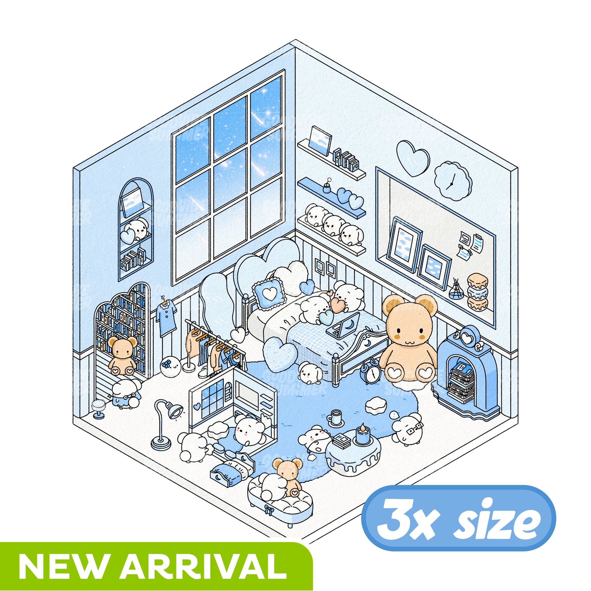 ブルーベアベッドルーム 3xサイズ