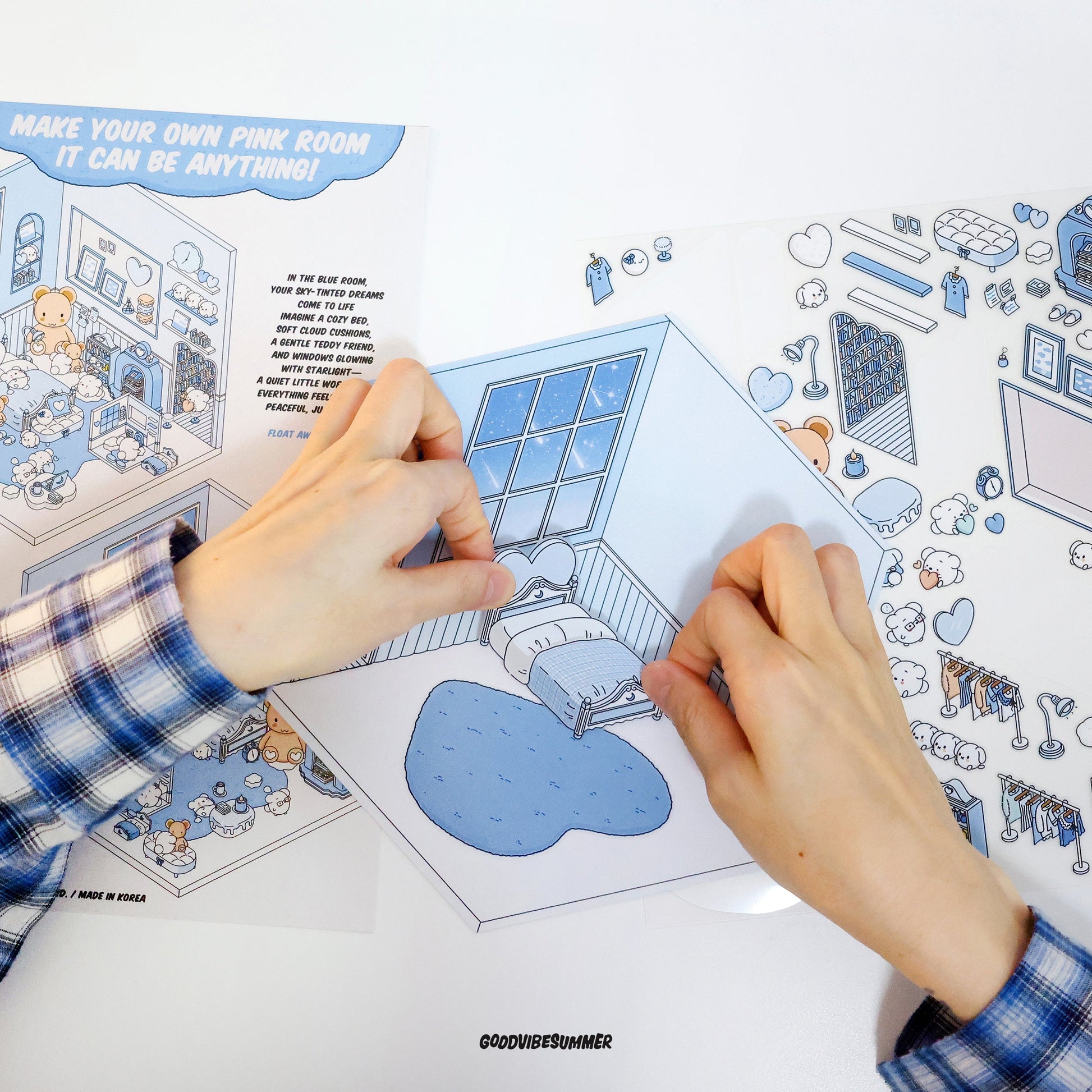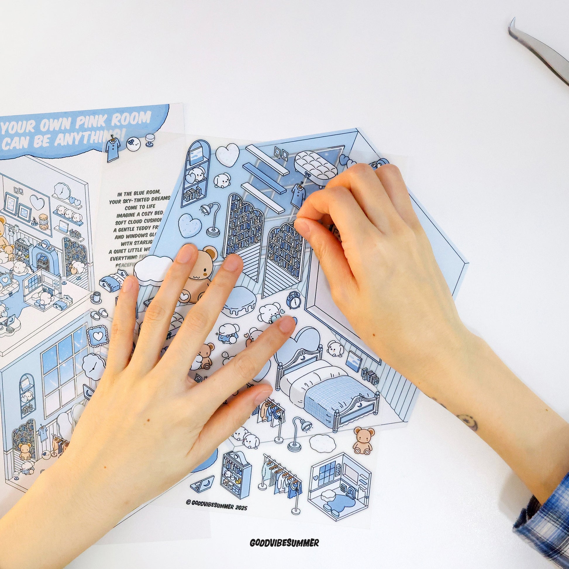 GOODVIBESUMMER シーン ステッカー キットを使用すると、剥がして、貼って、組み立てるだけです。絵の具がこぼれたり、ラメが散らかったりすることなく、あらゆる年齢の空間認識力を高め、想像力を刺激する、スクリーンフリーの純粋な創造性が生まれます
