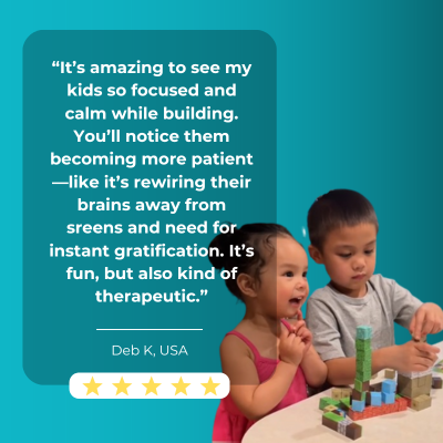 おそらくそんなことはありません。STEMBlox™は、組み立て、積み重ね、デザインを無限に展開し、子どもたちを夢中にさせ、遊ぶたびに新しい創造を促します。