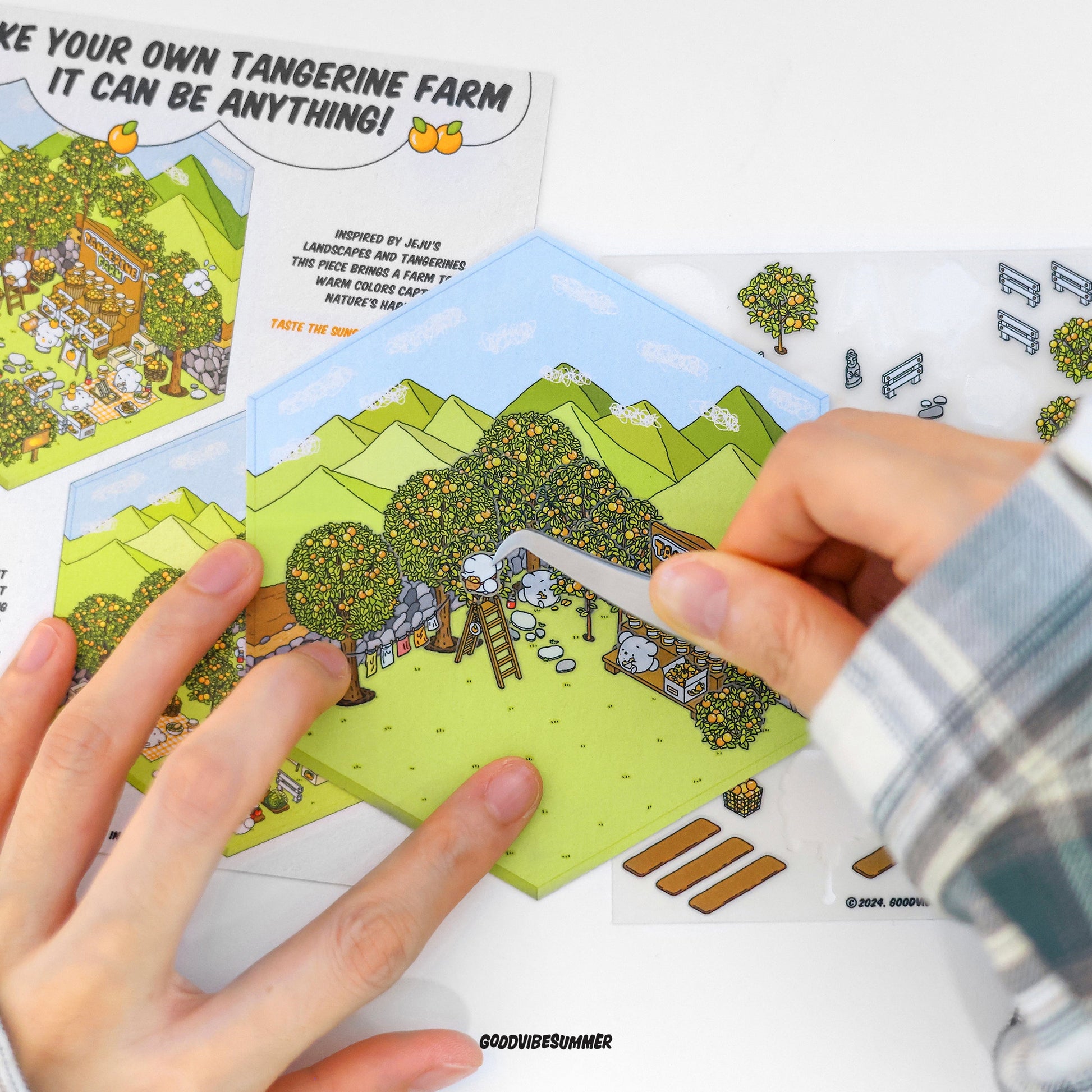GOODVIBESUMMER シーン ステッカー キットを使用すると、剥がして、貼って、組み立てるだけです。絵の具がこぼれたり、ラメが散らかったりすることなく、あらゆる年齢の空間認識力を高め、想像力を刺激する、スクリーンフリーの純粋な創造性が生まれます
