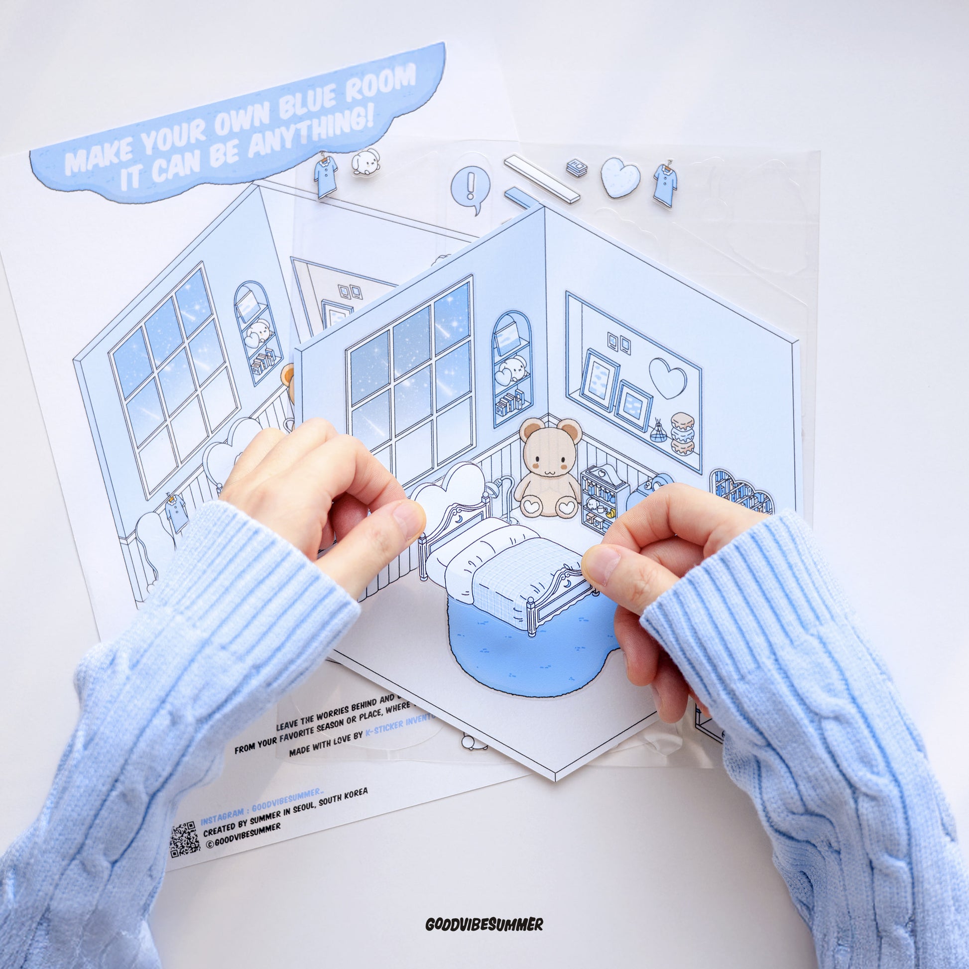 GOODVIBESUMMER シーン ステッカー キットを使用すると、剥がして、貼って、組み立てるだけです。絵の具がこぼれたり、ラメが散らかったりすることなく、あらゆる年齢の空間認識力を高め、想像力を刺激する、スクリーンフリーの純粋な創造性が生まれます。