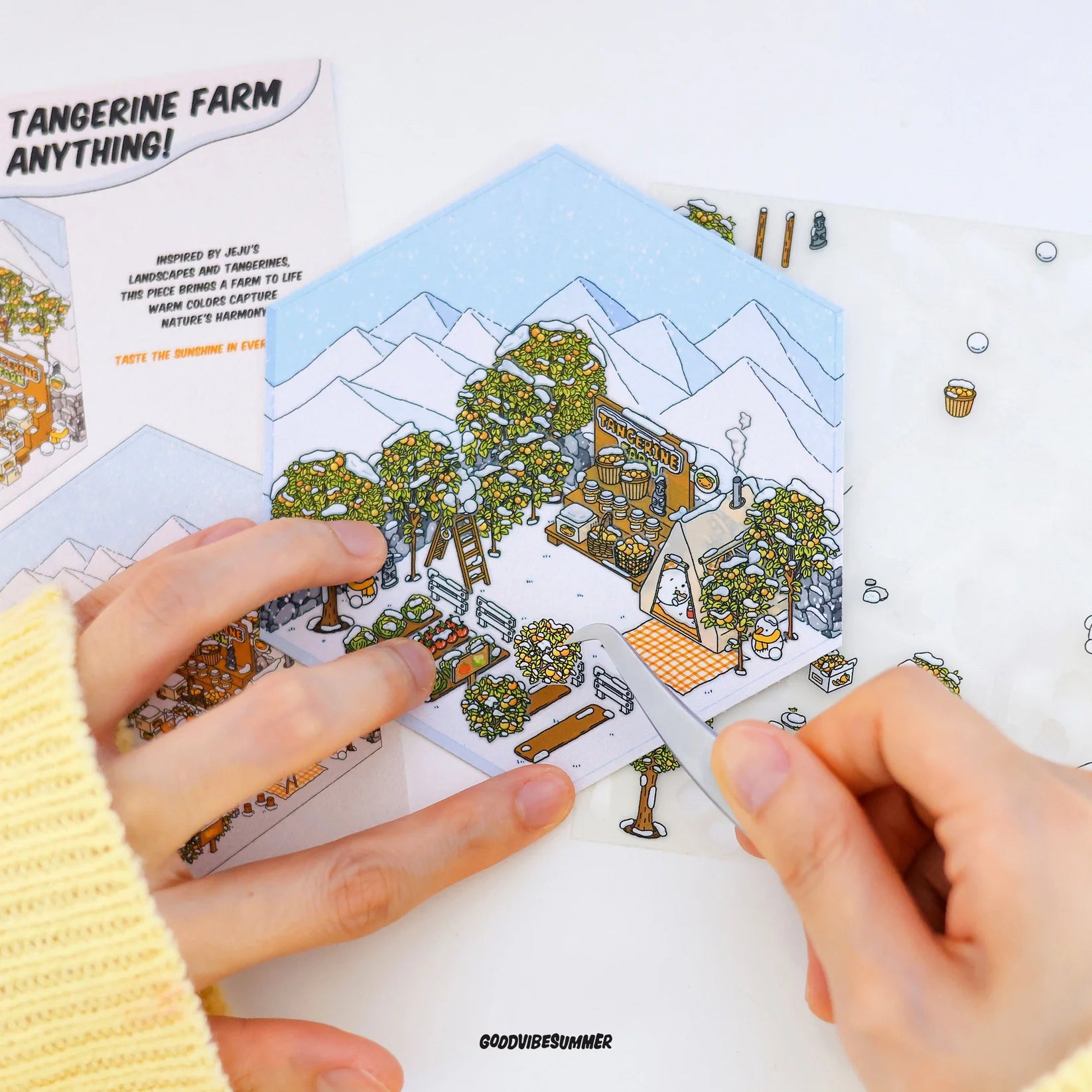 GOODVIBESUMMER シーン ステッカー キットを使用すると、剥がして、貼って、組み立てるだけです。絵の具がこぼれたり、ラメが散らかったりすることなく、あらゆる年齢の空間認識力を高め、想像力を刺激する、スクリーンフリーの純粋な創造性が生まれます