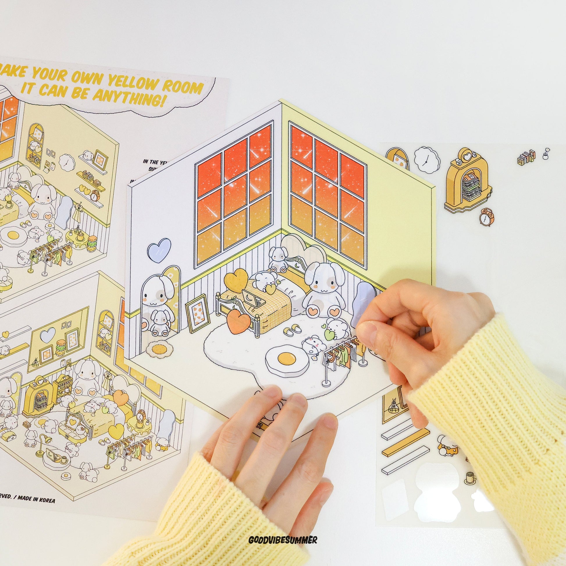 GOODVIBESUMMER シーン ステッカー キットを使用すると、剥がして、貼って、組み立てるだけです。絵の具がこぼれたり、ラメが散らかったりすることなく、あらゆる年齢の空間認識力を高め、想像力を刺激する、スクリーンフリーの純粋な創造性が生まれます